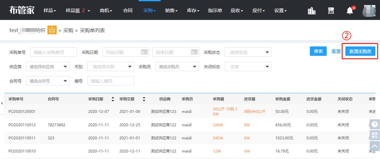 ①点击采购-采购单